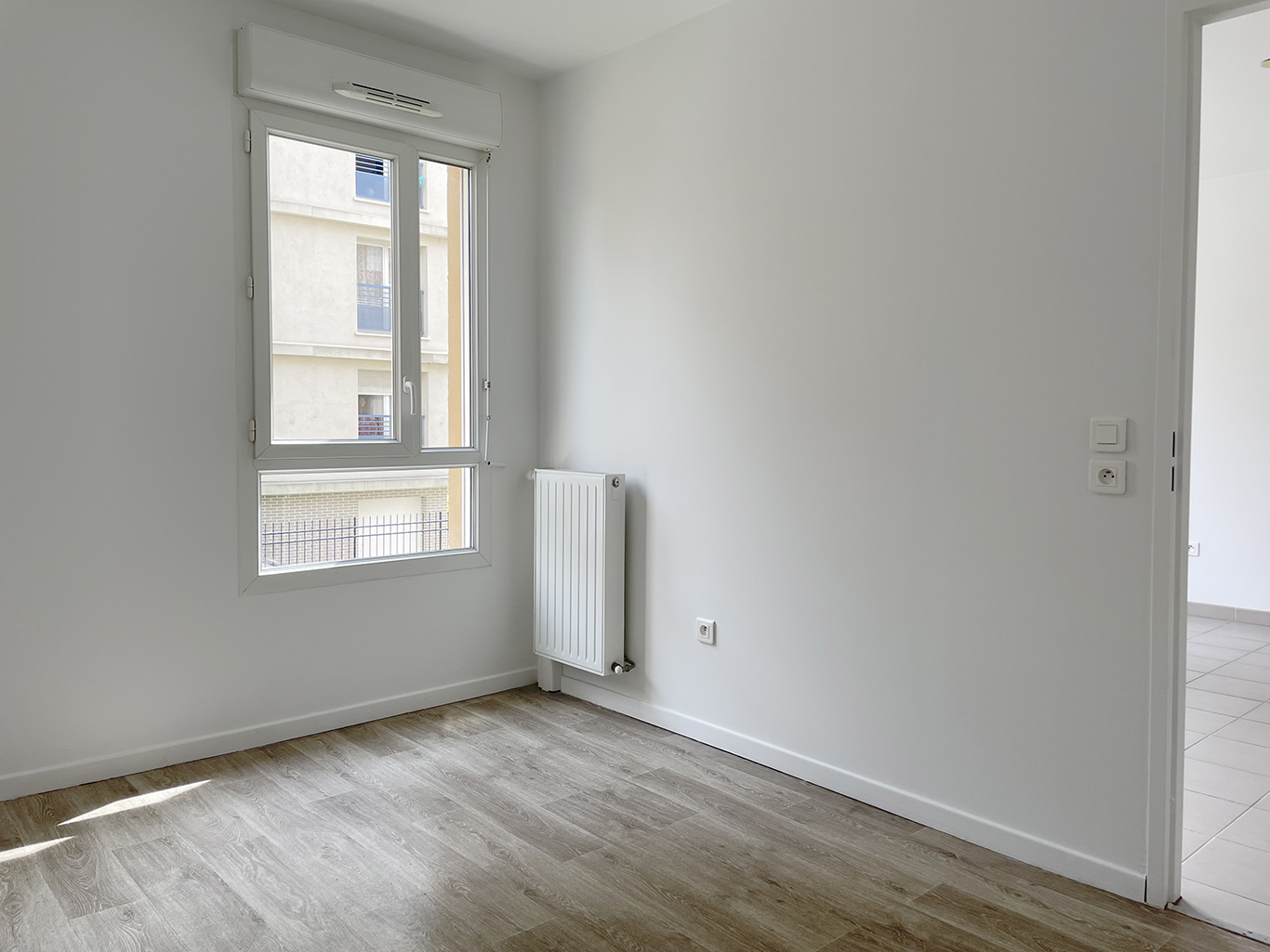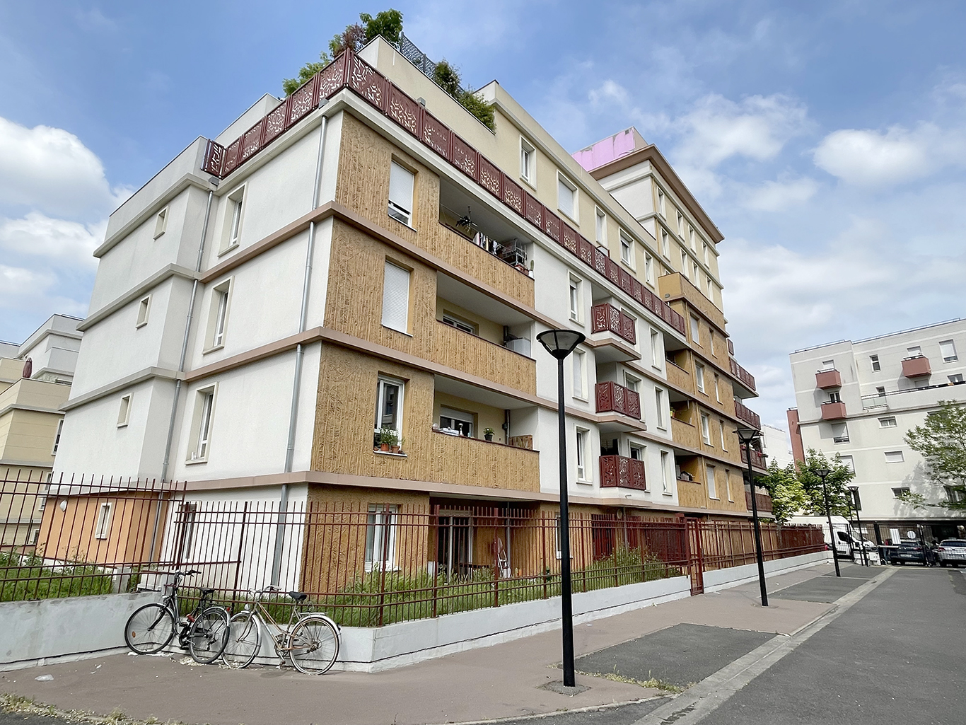 Aubervilliers. Centre-Ville. Rue Mouloud Aounit. A 5mn à pied du Métro « Mairie d’Aubervilliers ». Dans résidence de bon standing 2014, située dans une voie privée fermée par une grille, très agréable appartement de 4 pièces principales de 69,83 m2 Loi Carrez. Exposition plein Sud. Calme, clair et ensoleillé. 1er étage avec ascenseur. Entrée, grand séjour avec cuisine ouverte de 23,40 m2, 3 chambres dont l’une avec balcon-loggia de 2,20 m2, grande salle de bains, wc séparés. Placards dans les chambres. Plan de l’appartement très fonctionnel. Peintures neuves. Électricité aux normes. Bâtiment récent donc isolé et basse consommation. Emplacement de parking au 1er sous-sol inclus. Écoles, transports et commerces à proximité. Très bon DPE : C128 & C25.