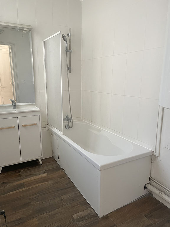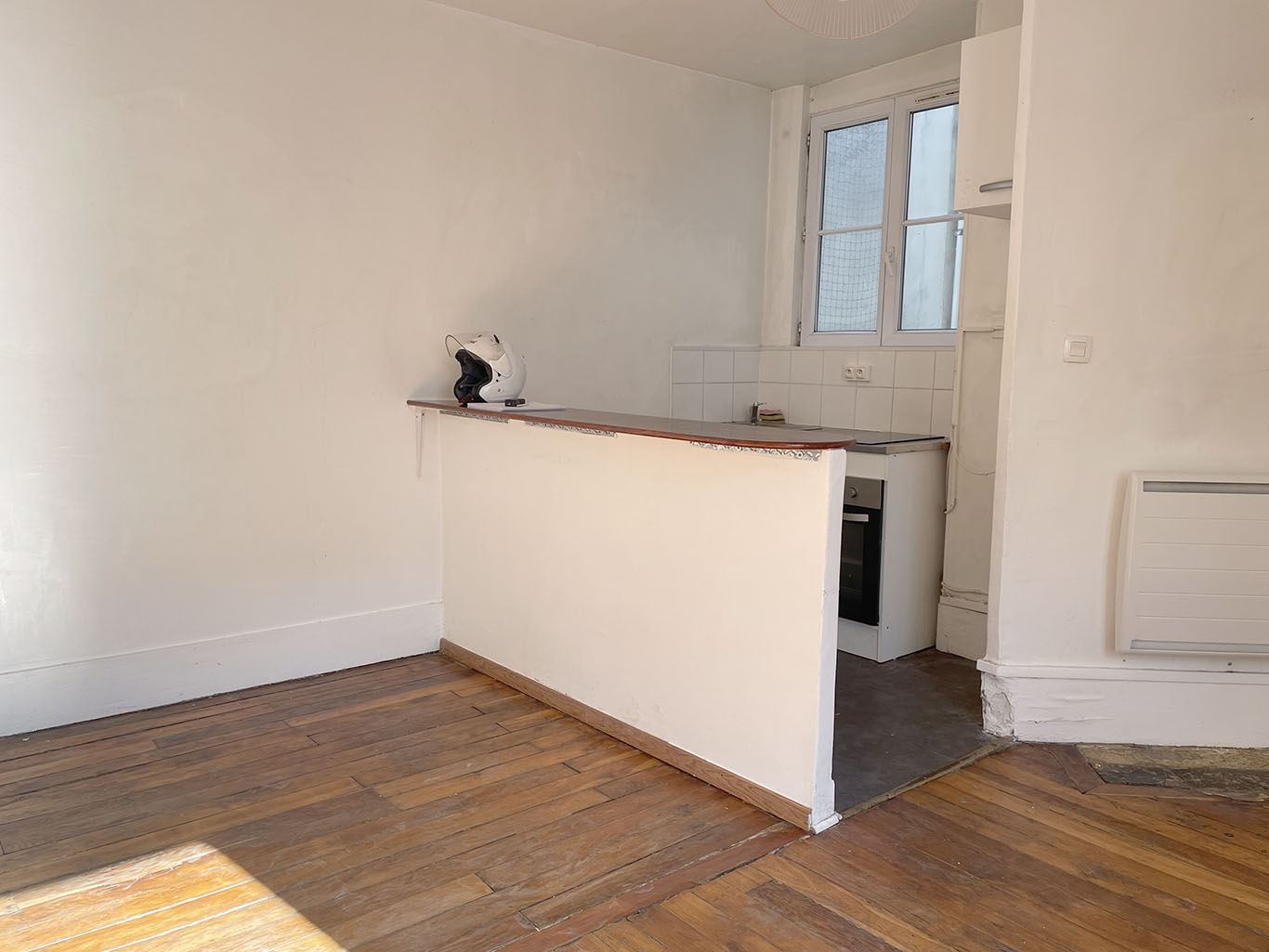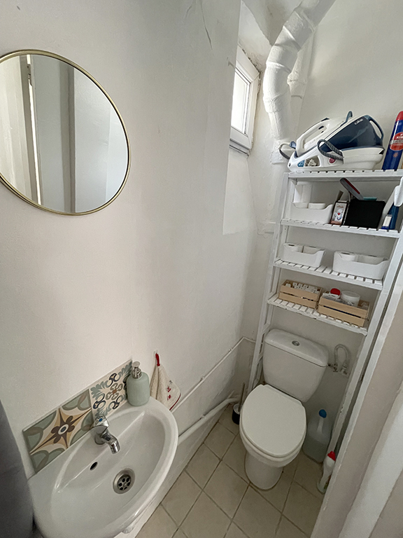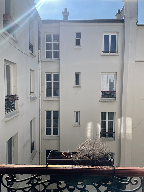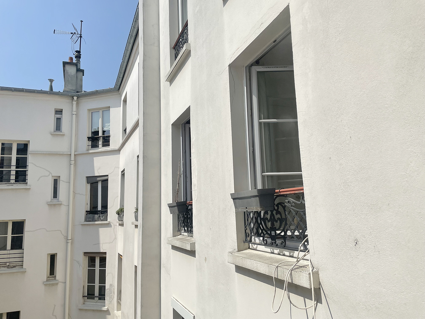 Paris 18ème. Métro Abbesses. Rue des Abbesses. Agréable 2 pièces de 40,47 m2 loi Carrez exposé plein Sud sur cour au calme. 5ème étage sans ascenseur. Entrée (avec fenêtre), séjour avec cuisine Us de 18,19 m2, belle chambre de 13,80 m2, salle de bains (avec fenêtre), wc séparés avec lave-mains (avec fenêtre). Parquet chêne ancien. Double vitrage pvc dans tout l’appartement. Chauffage électrique. Cave saine en terre battue. L’appartement est à rénover. Local vélos. DPE : E328 & B10.