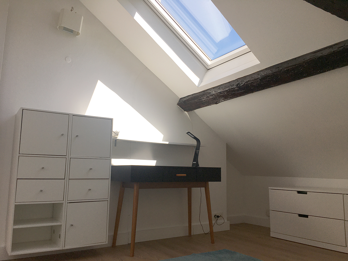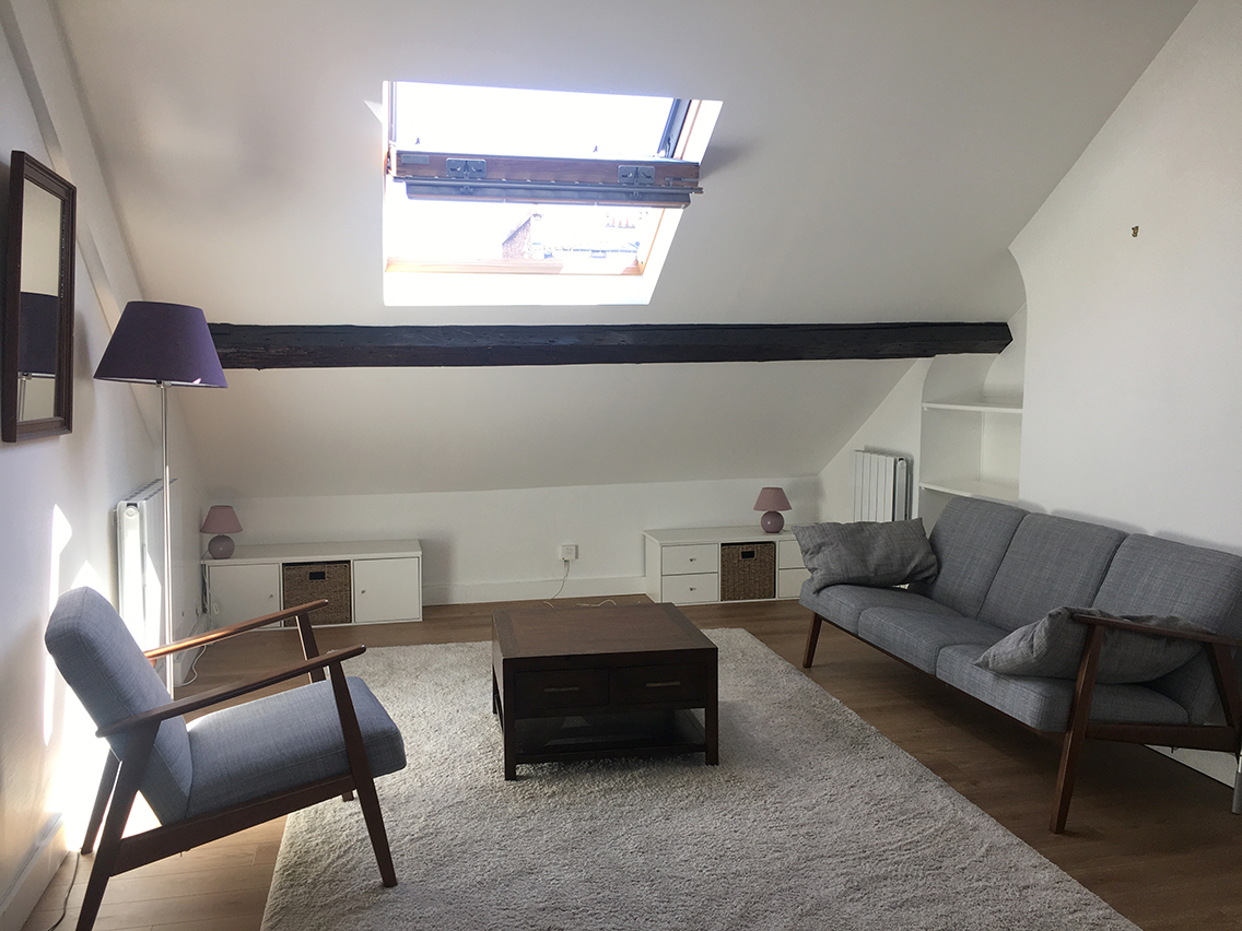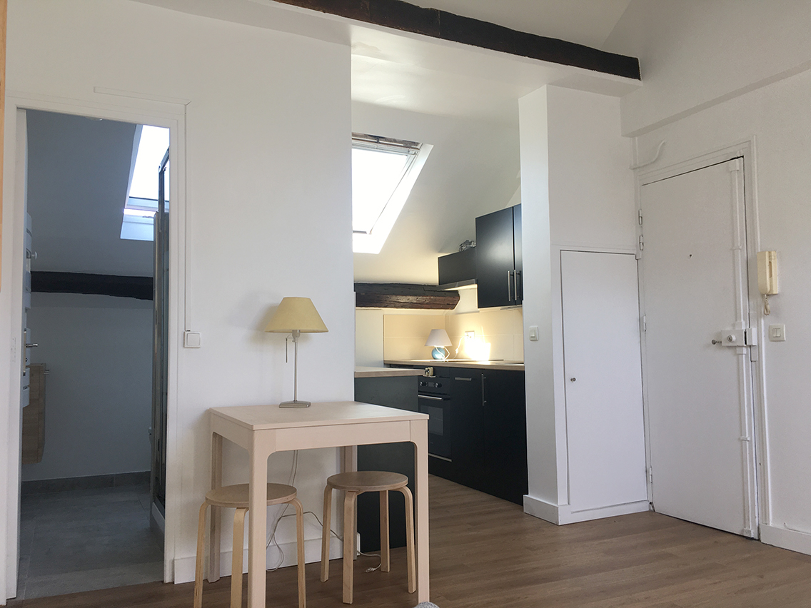 Paris 14ème. Métro Mouton-Duvernet à 2 mn. Avenue René Coty proche croisement Tombe Issoire. Charmant appartement sous les toits de 3 pièces principales. 2 chambres. 59,57 m2 au sol. 30,12 m2 Loi Carrez. 5ème étage sans ascenseur. Totalement rénové en 2016. Séjour avec cuisine semi-ouverte aménagée, salle de douche avec wc. Triple exposition. Soleil, lumière, calme. DPE : D226 & B7.