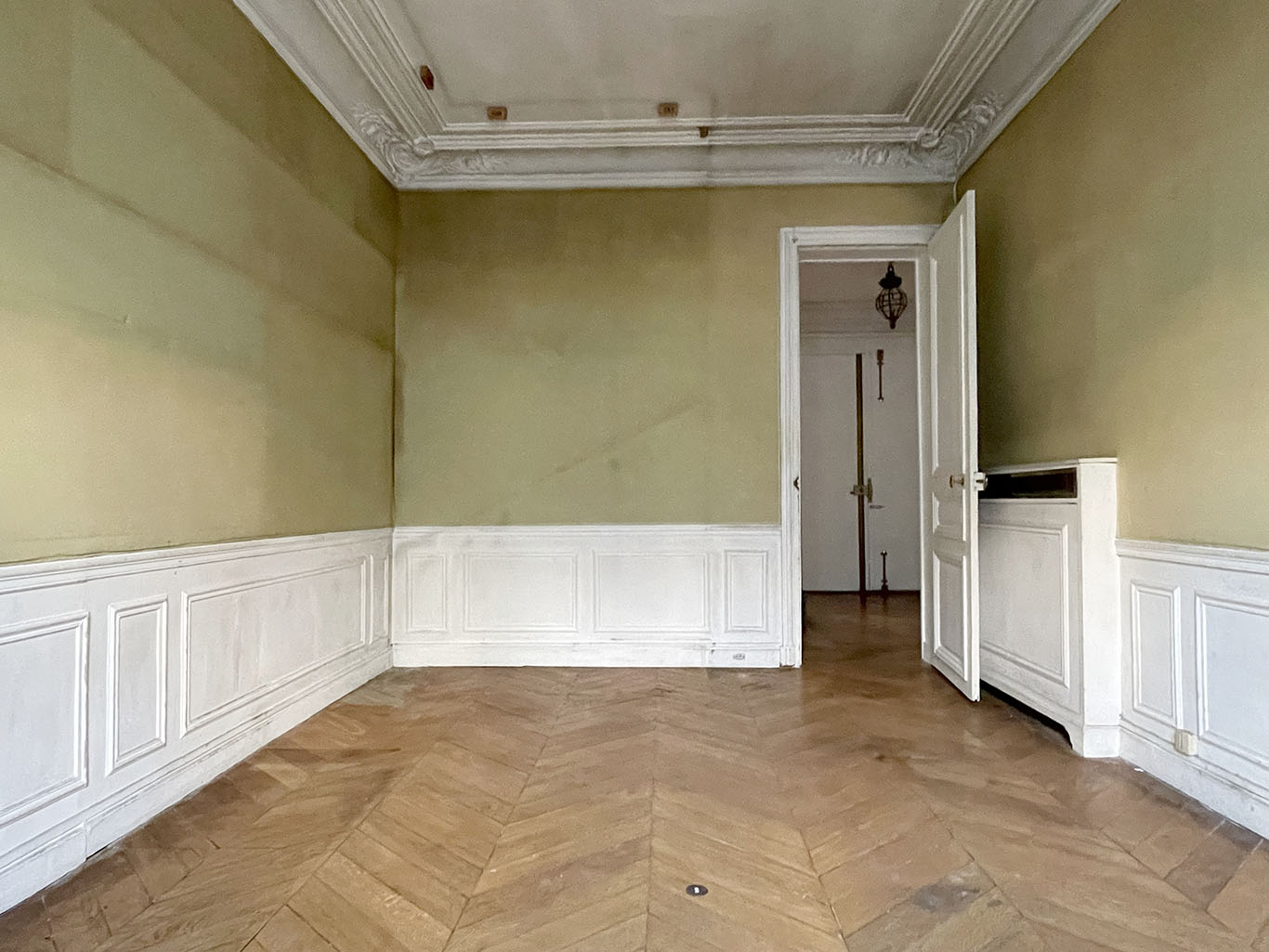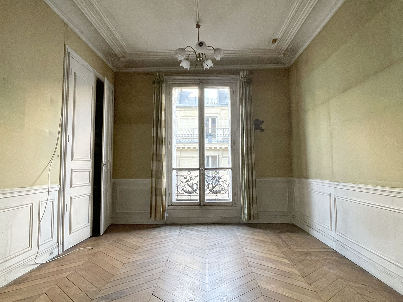 Paris 9ème, dans le quartier Martyrs-Rochechouart. Proche tous commerces, transports, écoles. Dans un bel immeuble en pierre de taille, très bel appartement classique de 115,49 m2 Loi Carrez à rénover. Au 4ème étage avec ascenseur, 5 pièces principales, beaux volumes, hauteur sous plafond de 2,95m, charme de l’ancien : moulures, cheminée, parquet en chêne à point de Hongrie. Entrée, séjour, salle à manger, 3 chambres, salle de bains, wc séparés, cuisine dînatoire. Appartement traversant. Nombreuses possibilités d’aménagement (3 ou 4 chambres, double séjour, cuisine ouverte…). Un seul appartement par étage. Local vélos-poussettes. Une cave de plus de 10 m2 complète ce bien. Possibilité d’acquérir en complément une chambre de service de 10 m2 au 6ème avec ascenseur. DPE : E301 & E62