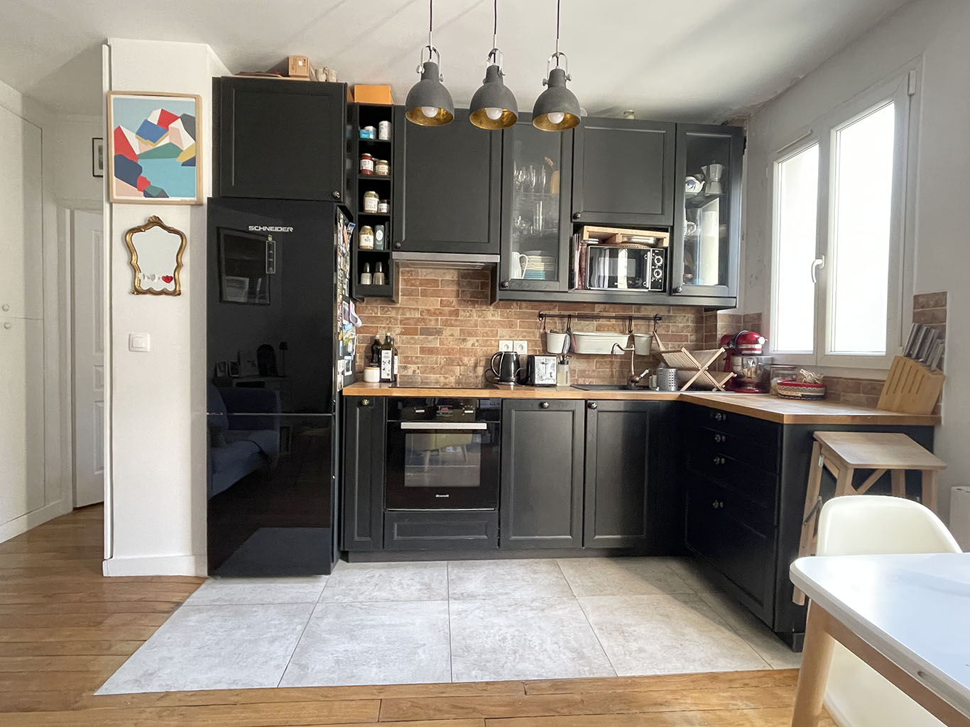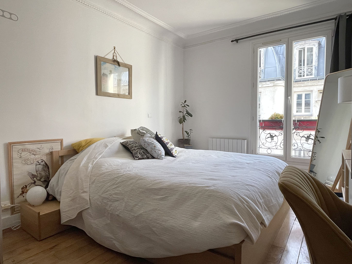 Paris 18ème. Rue Damrémont. Charmant appartement de 2 pièces principales de 39,97 m2 Loi Carrez. Au 5ème étage sur cour (sans ascenseur), exposé ouest. Entrée, séjour avec cuisine us. Chambre. Salle de douche. Wc séparés (avec fenêtre). Appartement totalement rénové en 2017. Cave saine de 3 m2. Gardienne. Bonne copropriété. DPE : E319 & C12.