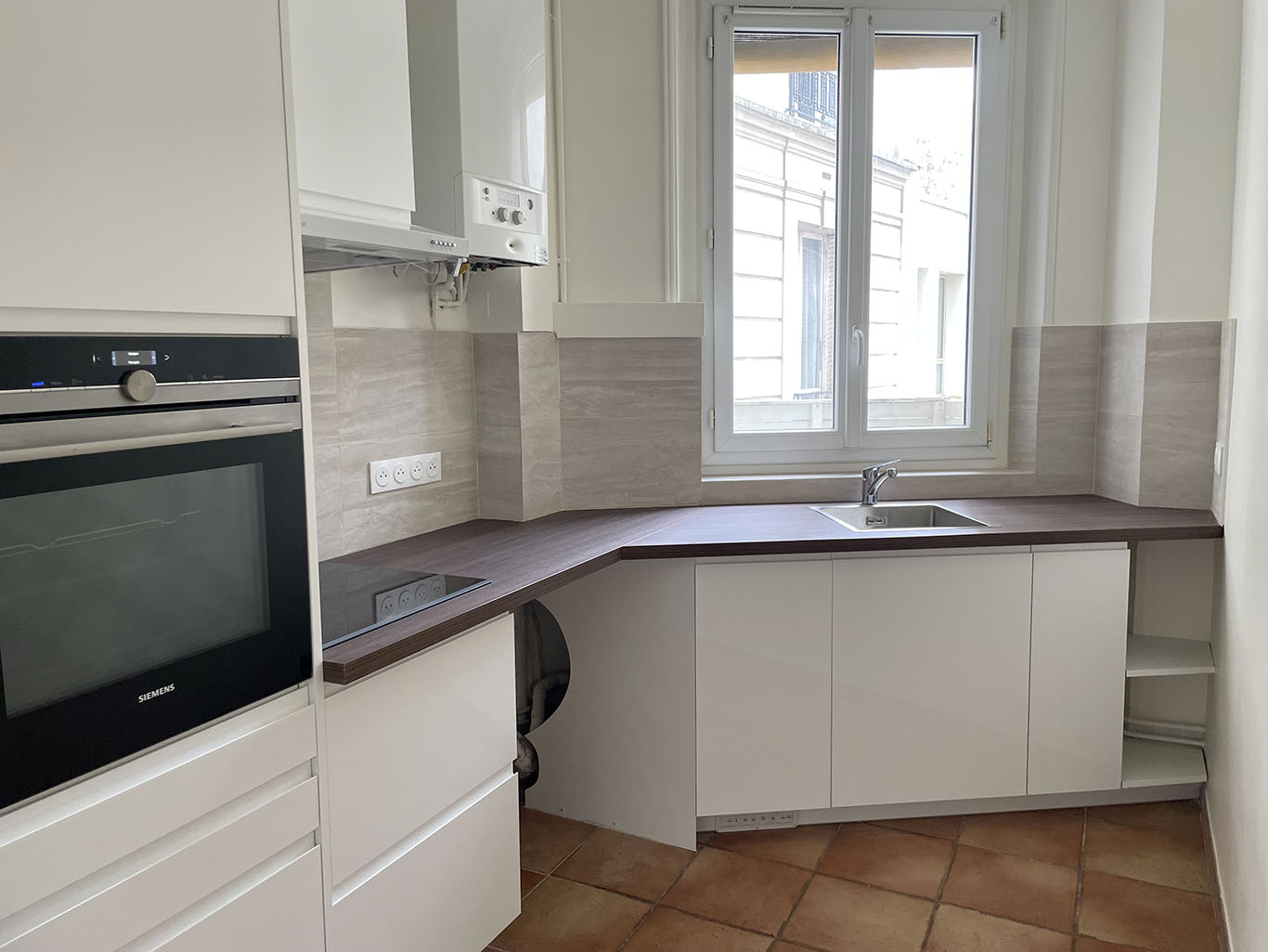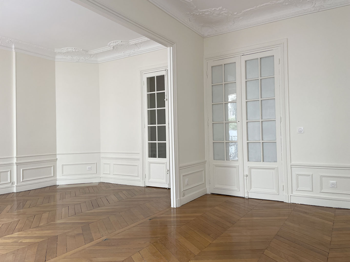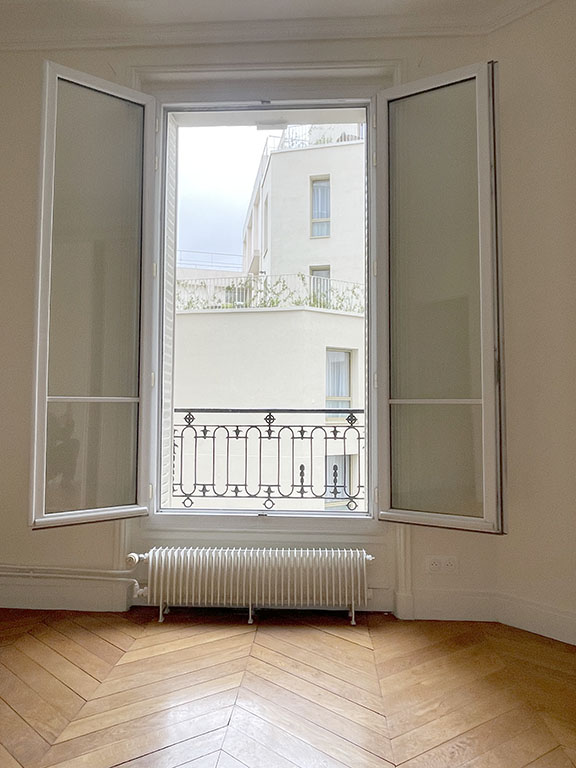 Paris 18ème. Rue Damrémont à proximité de la rue Marcadet. A 350 m du métro Lamarck-Caulaincourt. Immeuble de 1906 en pierre de taille ; au 2ème étage avec ascenseur, très bel appartement de 3 pièces principales de 67,27 m2 Loi carrez avec balcon filant. Parquet en point de Hongrie dans tout l’appartement, jolies moulures, belle hauteur sous plafond de 2m95. Appartement traversant, exposé Est-sud-est. Entrée, double séjour, cuisine aménagée et équipée neuve, salle de douche neuve (avec petite fenêtre), wc séparés (avec petite fenêtre). Chauffage gaz individuel et double vitrage. Appartement rénové : électricité, cuisine, salle de douche et peintures : neuves. Cave saine de 6,20 m2. Local vélo-poussettes dans l’ancienne loge de concierge. DPE : D225 & D49.